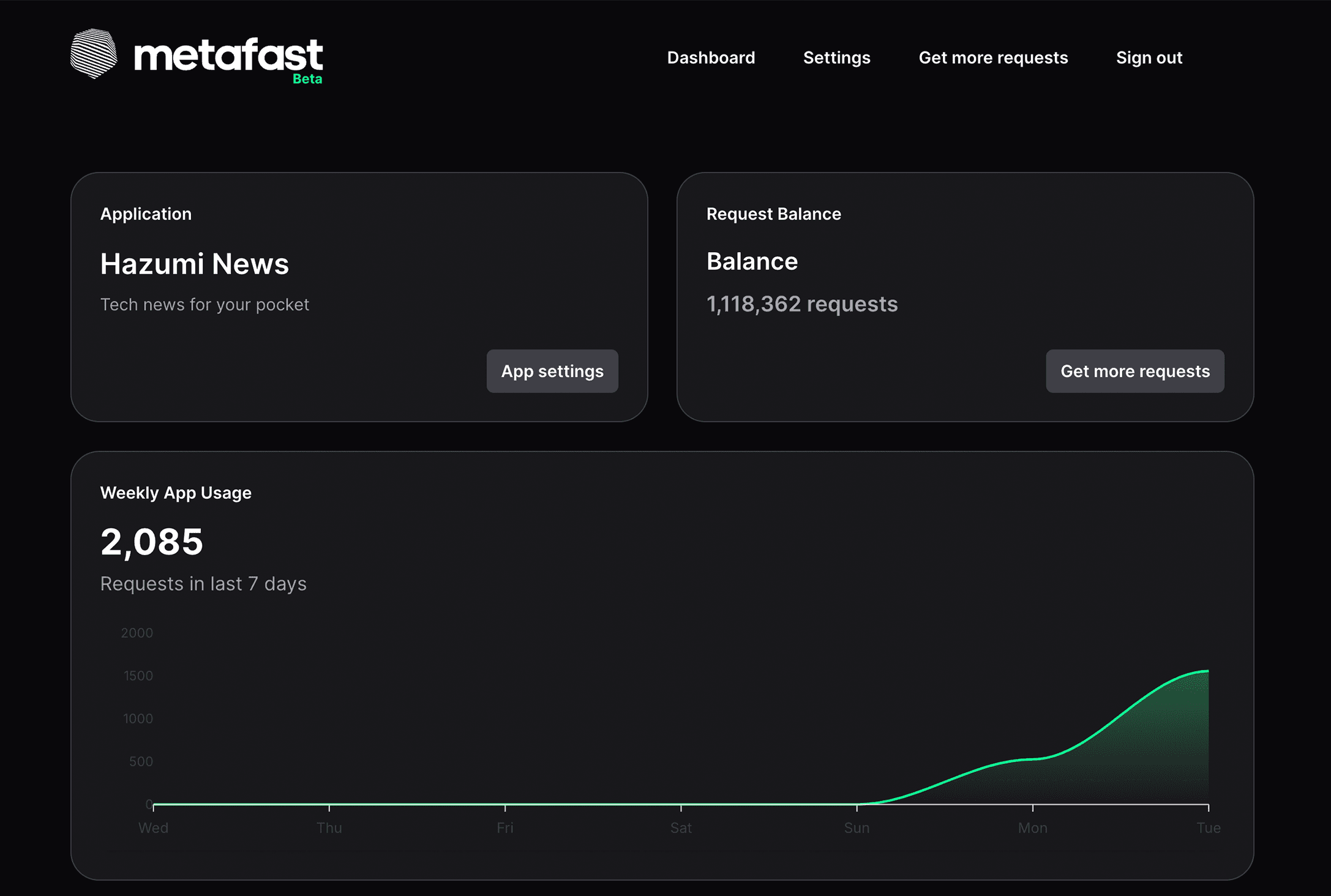 We aim for 99.9% uptime, but we do not offer any guarantees. We are a small team and sometimes things break. Rest assured, our other products rely on Metafast also, so we'll know as soon as something goes wrong.